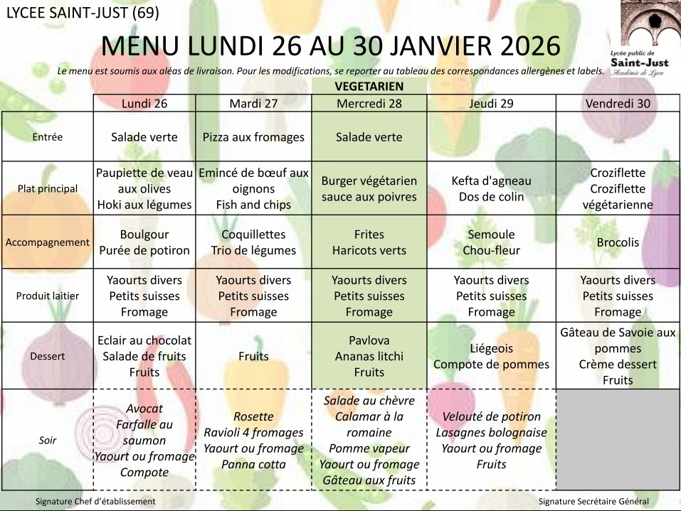 Menus de la semaine